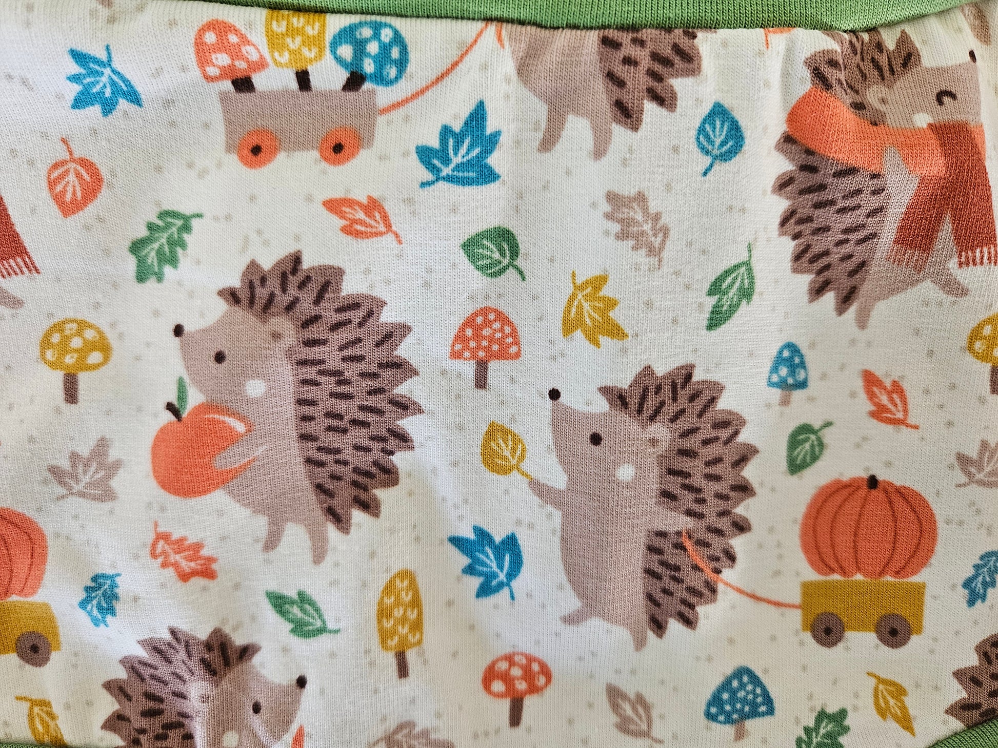 High quality, soft knit fabric. Made of 95% organic cotton, 5% elastane